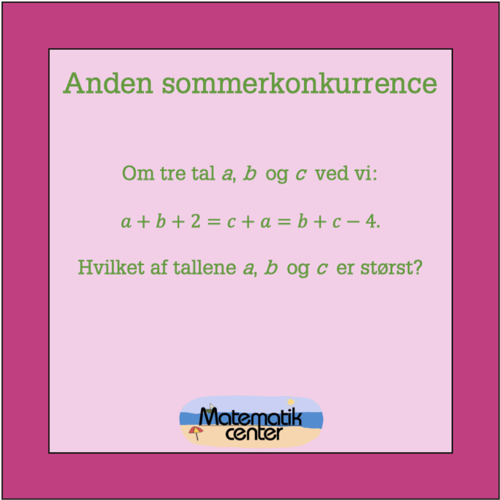 I den anden konkurrence skal du finde ud af, hvilket af de tre tal a, b og c, der er størst. Gå ind og svar på vores Facebookside, eller læs videre under billedet, hvis du har brug for et hint.