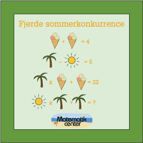 Hvor meget er en is, en palme og en sol værd? Prøv at bestemme symbolernes værdi, og løs til sidst det nederste regnestykke. Når du har et svar, kan du deltage i konkurrencen på vores Facebookside. Læs videre under billedet, hvis du har brug for et hint.