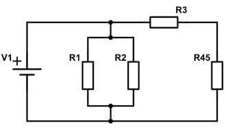 $$ R345 = 15\Omega+6\Omega = 21\Omega$$
