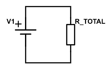 Til sidst samler vi R12 og R345, og finder dermed den totale modstand i kredsløbet, R_TOTAL,