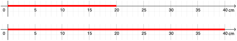 Hvis man fx skal angive en længde, kan man gøre det i cm. Hvis antallet af centimeter bliver fordoblet, betyder det også, at den længde man angiver, er dobbelt så lang. 40 cm er det dobbelte af 20 cm, som man kan se her: