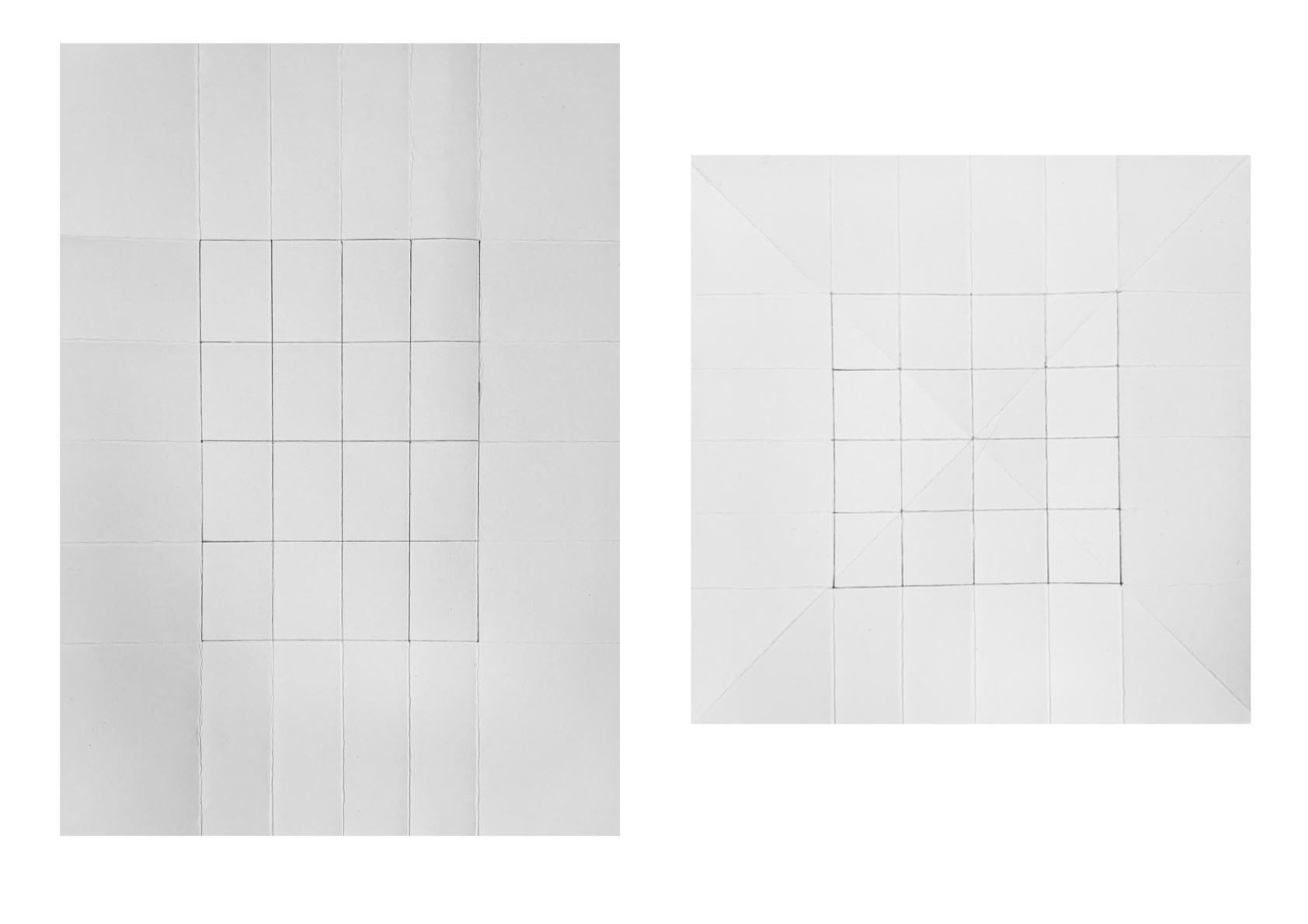 Fold grids af hvidt A4-papir. Fold både grids, der består af kvadrater, og grids, der består af rektangler.