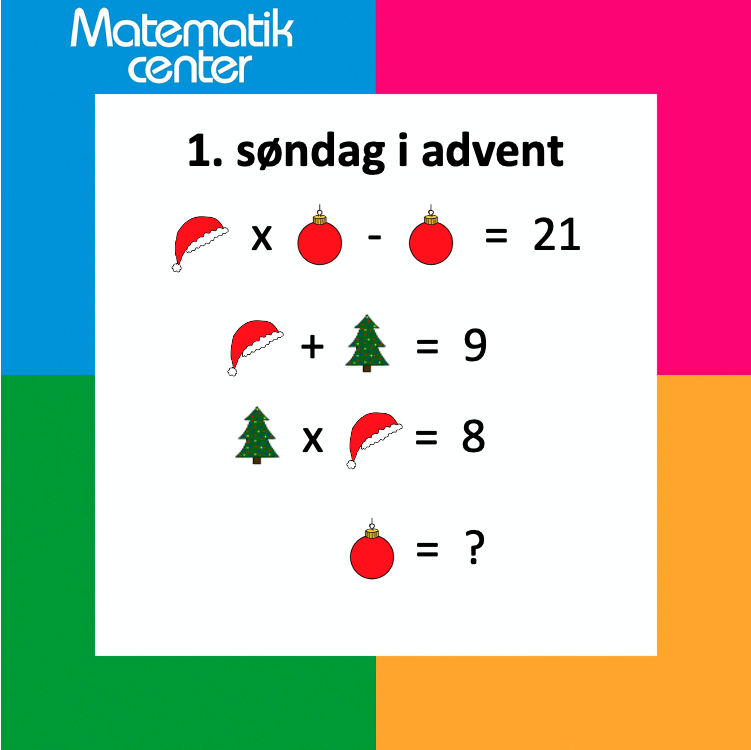 Velkommen til Matematikcenters adventskonkurrencer 2022! Hver søndag i advent klokken 10 kommer der en ny adventskonkurrence op, som man kan deltage i på vores Instagram. Følg med her på siden for at se de spørgsmål, man skal svare på for at vinde, og få hints til dem hvis det er nødvendigt.