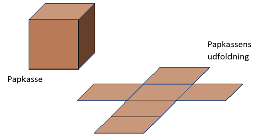 Fordi man i matematik gerne vil sige meget med få ord, så ændrer man nogle gange hele sætninger til enkelte ord. Det gør vi fx når vi taler om ’en tegning’. En tegning er det, der kommer ud af at nogen har tegnet noget, men selvom det er en handling at tegne noget, så skriver vi det som et enkelt ord. Eller i stedet for at skrive ’papkassen er blevet foldet ud’, så skriver man ofte ’papkassens udfoldning’ om den flade figur, der opstår når en papkasse foldes ud.
