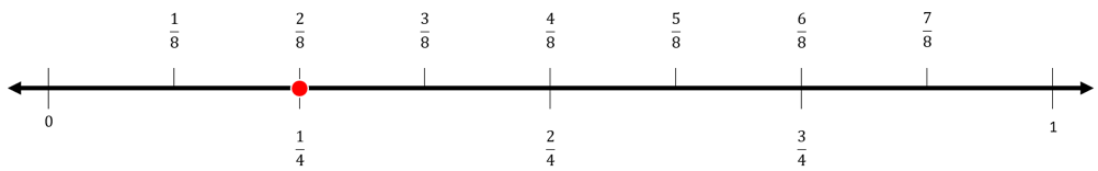 $$ \frac{1}{4} = \frac{1\cdot 2}{4\cdot 2} = \frac{2}{8} $$