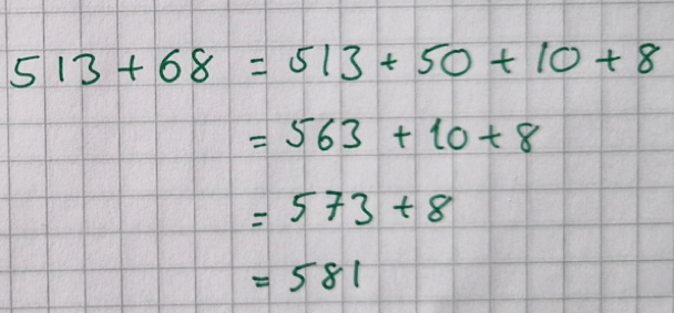 I dag går vi meget op i, at eleverne har forståelse for, hvorfor deres strategier virker. Du kan f.eks. se et barn løse ovenstående regnestykke på denne måde: