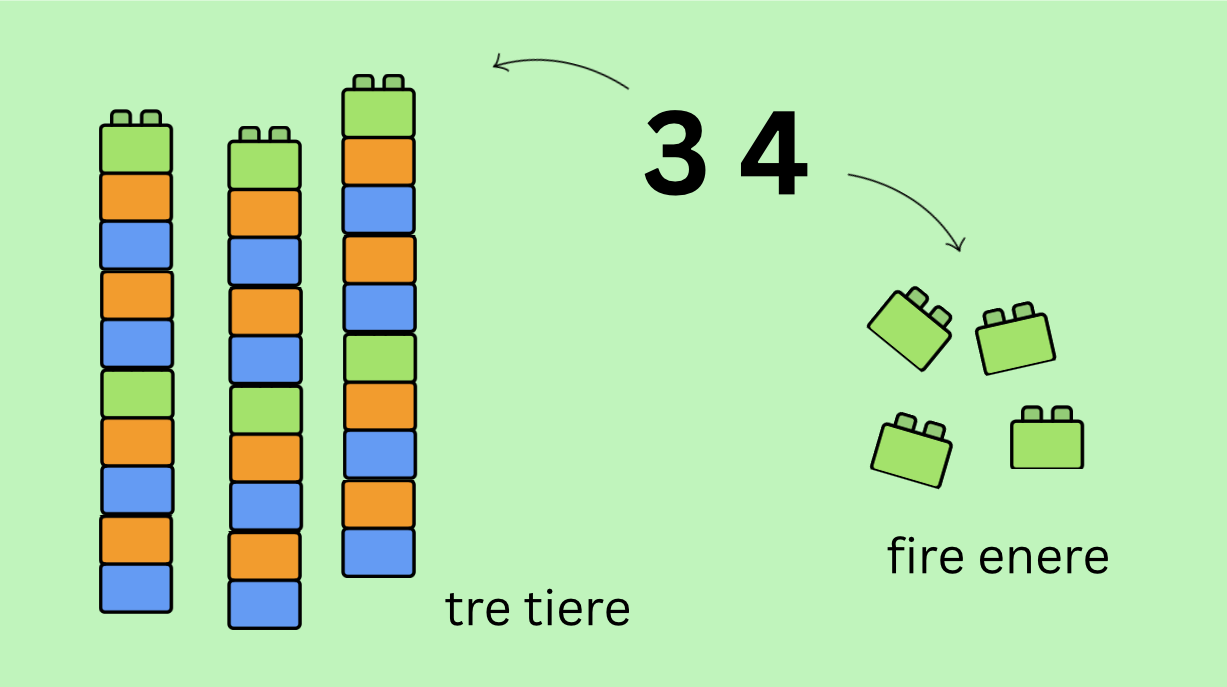 - Får styr på 10-talssystemet opbygning med 1’ere, 10’ere, 100’ere osv.